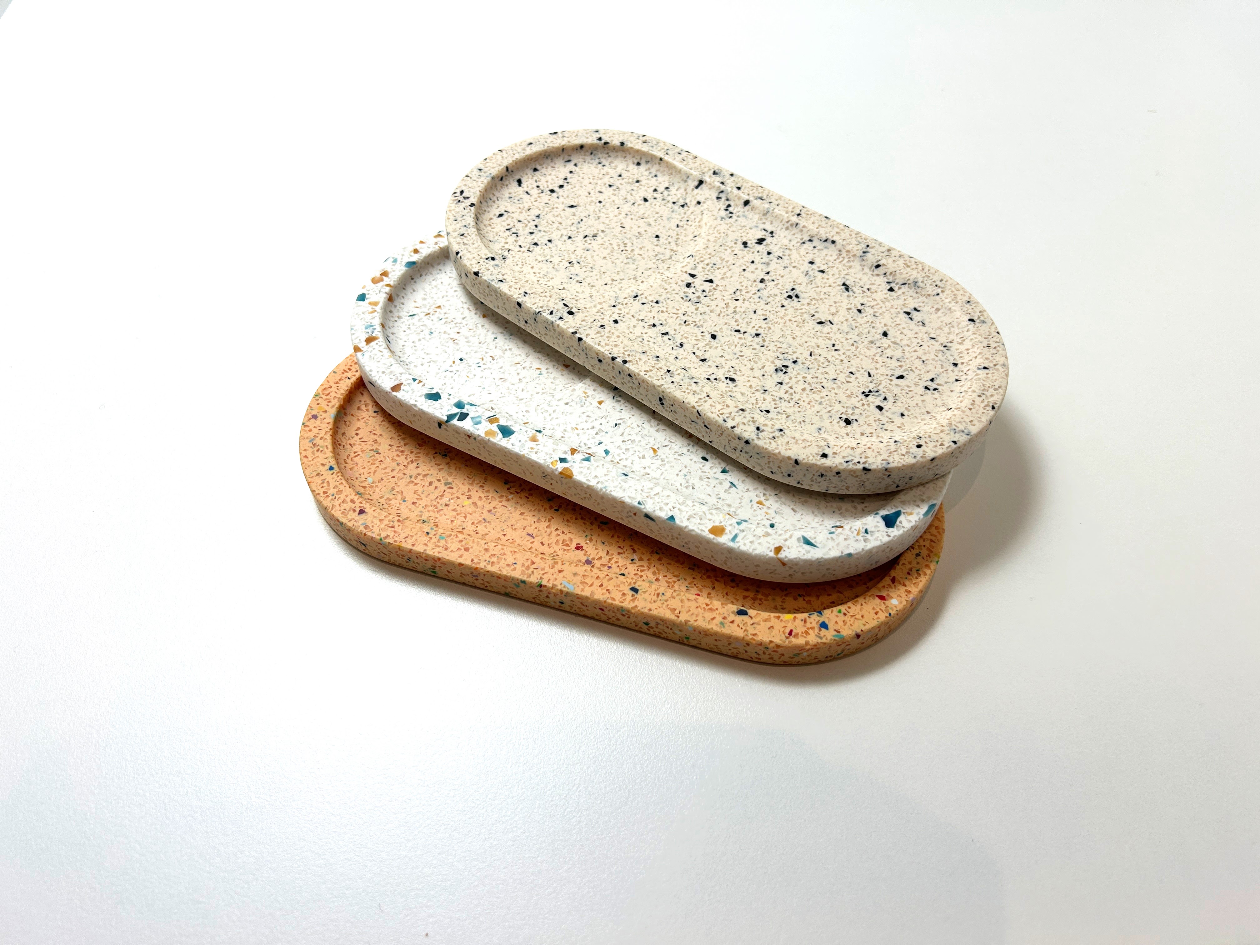 Design aperoplanken en schalen uit restjes Durat keukenaanrecht. Een mooi object voor je huis, of om in stijl je avondlijke snack - iltapala in 't Fins - op te serveren.